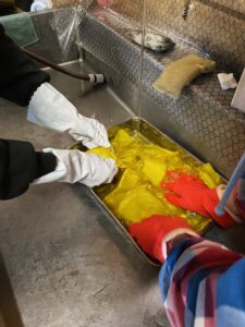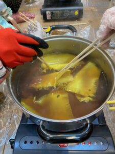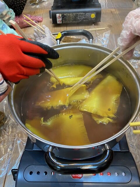 講義後は、そのキハダを使った染色も体験させていただきました。教えて下さったのは染色家の安永充子さんです。