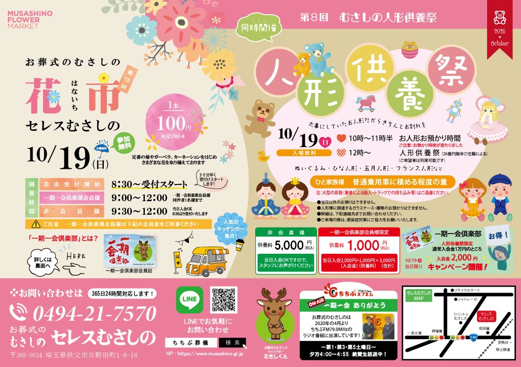 10月19日(日)開催!「むさしの花市」&「第8回 むさしの人形供養祭」のご案内