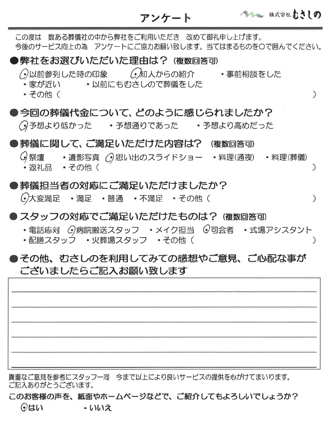 お客様の声 “無知な私たちを導いてくださり、無事に父を見送れました”